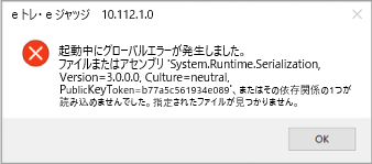 一部のパソコンにてWindows Updateや、Windows11へのアップグレードを行った後に、以下のメッセージが表示され、eトレを起動できなくなる事象が発生しております。