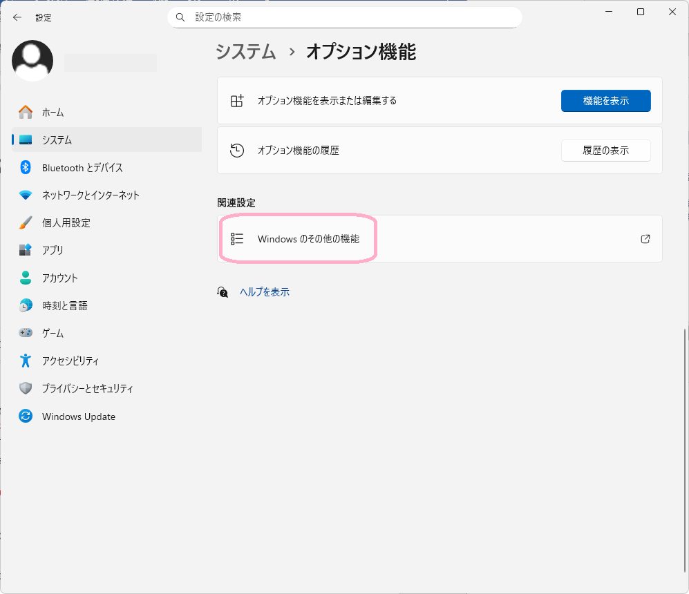 ③「Windowsのその他の機能」をクリックします。