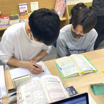 特に高1・高2生は受験まで時間の余裕があることで、どうしても入試への意識が希薄になりがちです。ですから、同学年の生徒を一つの教室に集め、そのグループの中で各々の個別学習を進めさせるようにしています。集団授業ではないですが、休み時間や行き帰りのちょっとした時間を一緒に過ごすだけでも、生徒のモチベーションを高める良いきっかけになります。