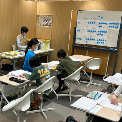小学生向けに集団個別指導をしており、10名前後の生徒が一緒に学習しています。 50分の授業のうち、初めの10分は、音読や百ます計算を用いて脳を活性化させます。 そして残りの時間は、eトレで国語と算数の演習トレーニングを進めるという流れです。 授業中は短時間できちんと集中させるため、問題の解答時間を設定しています。 例えば演習の始めに、国語の文章題のラーニング(読む)とステップ1(解く)を1セットにして7分以内で取り組ませていますが、それを毎回続けることで時間を意識して解くことができるようになっています。 また、それにより集中力が身に付くため、解答の精度も上がってきていますね。 中には間違えてしまうこともありますが、その時はまずラーニングを読んでしっかり振り返りをさせてから、同じ問題に再チャレンジさせることできちんと定着を促しています。