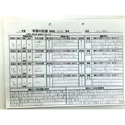 またヒーローズでは、授業ごとに「学習の記録」を生徒と講師の両方が書いています。月末には担当の先生と塾長がしっかりコメントを入れてそれを保護者の方に渡すのですが、一緒にeトレの「学習記録表」と「個人診断票」も渡しています。これもとても評判が良いですね。