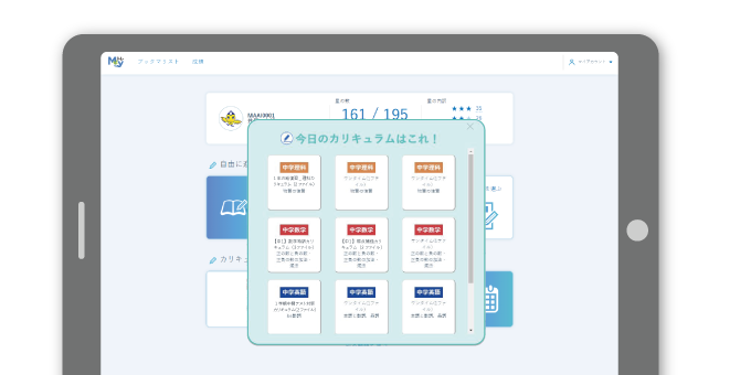 生徒のMyeトレにログインすると、1日の学習内容がポップアップ表示されます。その日やるべきことに明確になるので、ペースを整えながら効率的な自立学習が行えます。