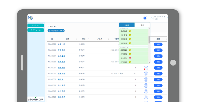 生徒のMyeトレ・先生の管理ツールのどちらからも、手書きデータを閲覧できます。生徒が記入したメモや途中式も確認できるので、つまずきが一目瞭然。学習フォローに抜群です。