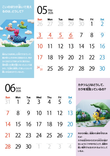月別カレンダーと日めくりカレンダーをそれぞれ2種類ご用意しています。